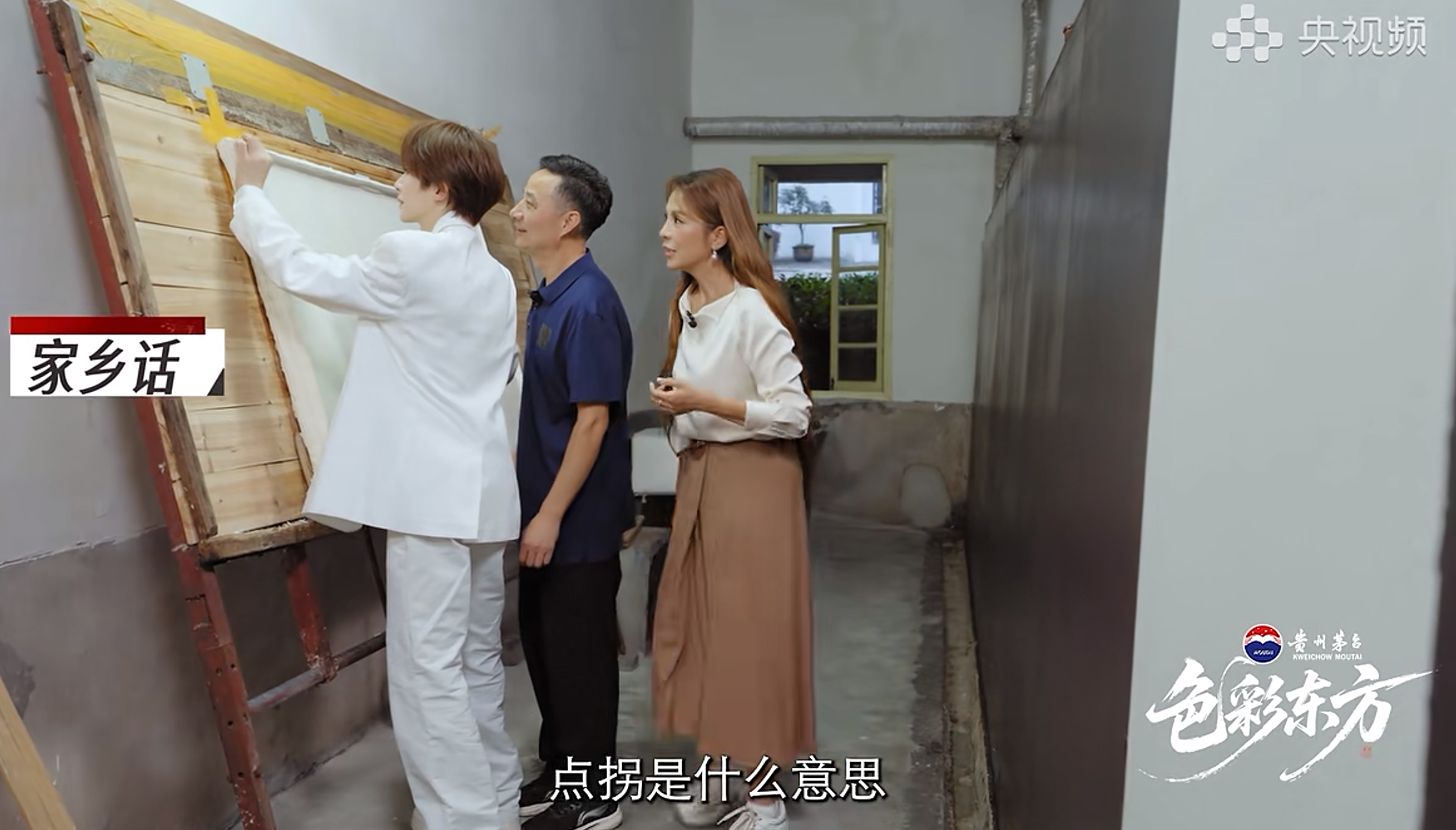 大皖新闻记者看到,在节目中,主持人朱迅和歌手刘宇一起,带着观众们沉浸式体验古法造纸,看百道工序如何铸就出“千年不朽”的传奇。